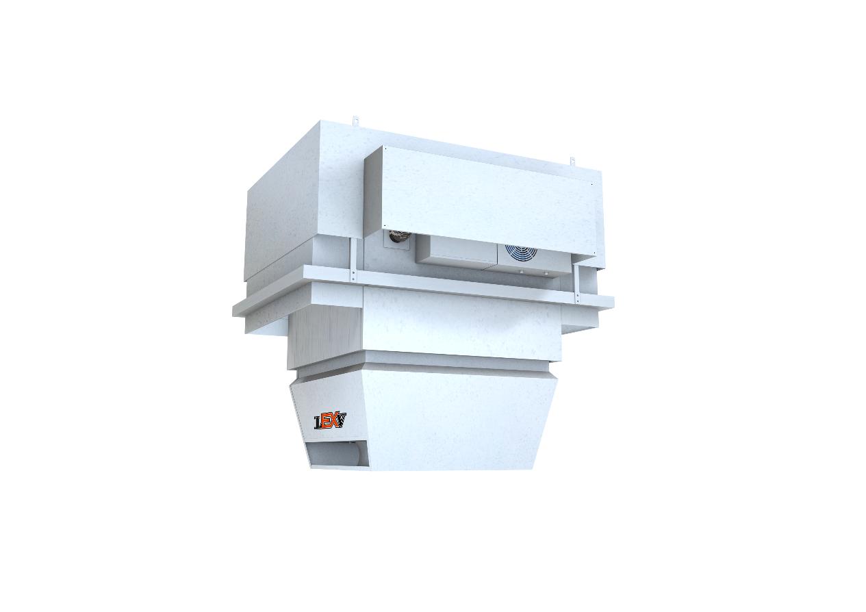 燃气式高大空间屋顶采暖热回收新风机组,安装在屋顶,燃烧器部分在室外,在燃气式高大空间采暖机组基础上增加了新风输入功能、热回收功能。